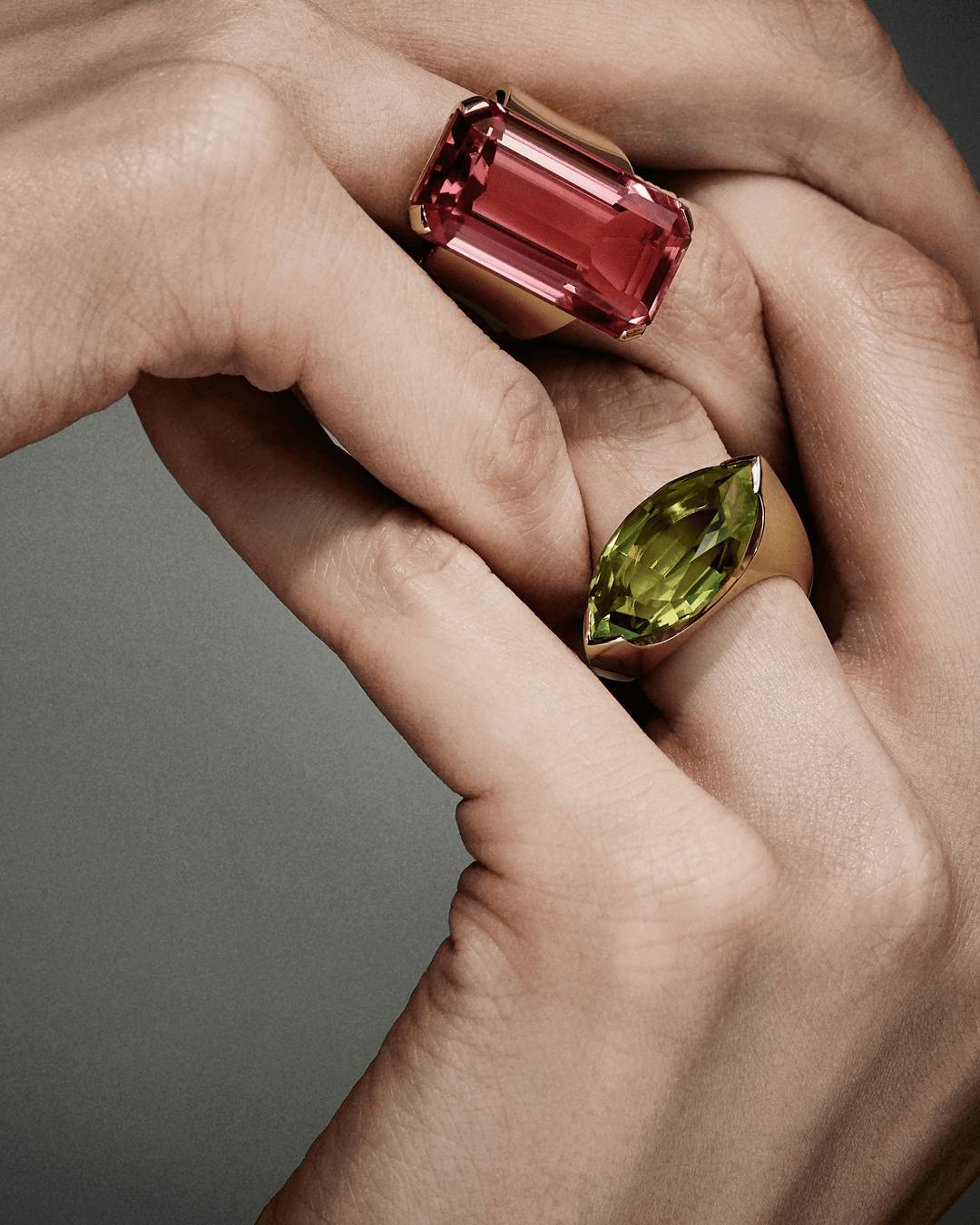 Der Morganit Fire Ring ist aus 18-karätigem Roségold gefertigt und mit einem Peridot (einem wunderschönen hellgrünen Edelstein) im Navetteschliff zu 12,74 Carat besetzt. Der Peridot ist sorgfältig in die kantige Ringfassung aus Roségold eingefasst, die ihm ein starkes Aussehen verleiht. Der Navetteschliff des hellgrünen Peridots, auch bekannt als Marquiseschliff, betont seine natürliche Schönheit und fängt seine feurige Essenz ein.