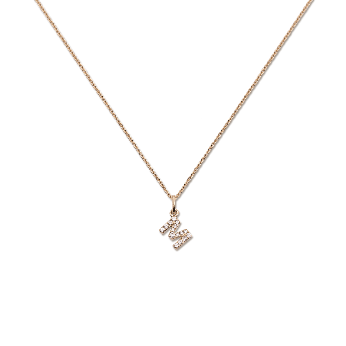 Dieser Anhänger ist auf einer zarten Kette aus 18 Karat Gold eingearbeitet. In dem Buchstaben sind kleine, runde Diamanten im Brillant-Schliff eingefasst und kann mit anderen Ketten oder Anhängern kombiniert werden.