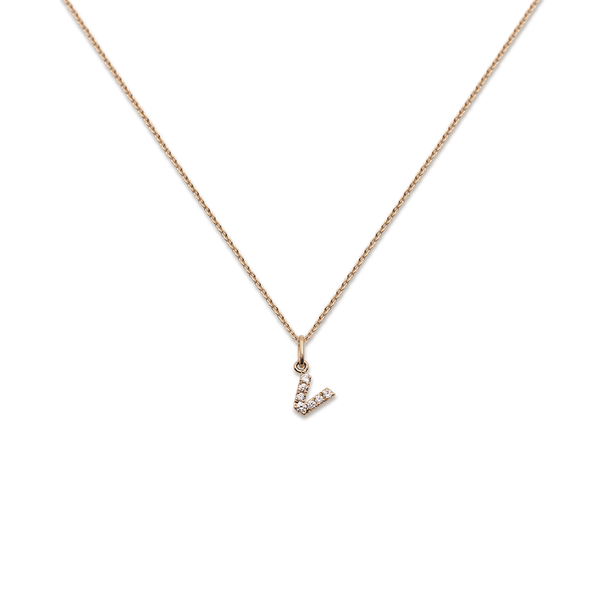 Dieser Anhänger ist auf einer zarten Kette aus 18 Karat Gold eingearbeitet. In dem Buchstaben sind kleine, runde Diamanten im Brillant-Schliff eingefasst und kann mit anderen Ketten oder Anhängern kombiniert werden.