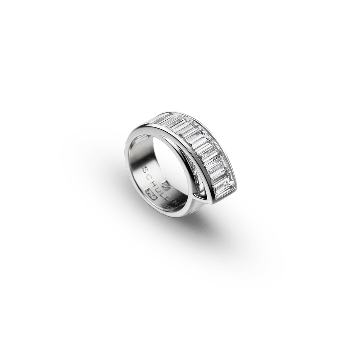 <span data-sheets-value="{"1":2,"2":"Der „Languette“ Ring ist minimalistisch und hebt im wahrsten Sinne des Wortes die eingeschliffen Baguette-Diamanten hervor. Über 4ct ergeben sich aus den eng aneinandergerieten Steinen, die mit einer Kanalfassung nahtlos in den 18k Weißgoldring gesetzt sind. Von oben betrachtet ist der Ring kaum wahrnehmbar. Dies ist der angewinkelten Aufstellung der über den Finger gereihten G/VS Diamanten zu verdanken, wodurch sie ihre maximale Brillanz offenbaren können. "}" data-sheets-userformat="{"2":13185,"3":{"1":0},"10":1,"11":4,"12":0,"15":"Nunito","16":9}">Der „Languette“ Ring ist minimalistisch und hebt im wahrsten Sinne des Wortes die eingeschliffen Baguette-Diamanten hervor. Über 4ct ergeben sich aus den eng aneinandergerieten Steinen, die mit einer Kanalfassung nahtlos in den 18k Weißgoldring gesetzt sind. Von oben betrachtet ist der Ring kaum wahrnehmbar. Dies ist der angewinkelten Aufstellung der über den Finger gereihten G/VS Diamanten zu verdanken, wodurch sie ihre maximale Brillanz offenbaren können. </span>